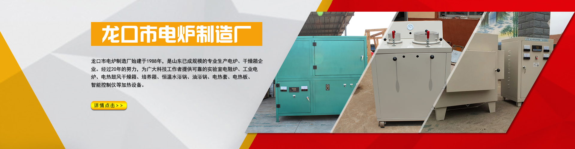 龍口市電爐制造廠始建于1988年,為山東規(guī)模專業(yè)生產(chǎn)電爐、干燥箱企業(yè)。經(jīng)過20年的努力,為廣大科技工作者提供可靠的實(shí)驗(yàn)室電爐、馬弗爐、灰吹爐、實(shí)驗(yàn)電爐、工業(yè)電爐、試金爐、箱式電阻爐、臺(tái)車式電阻爐、電熱鼓風(fēng)干燥箱、培養(yǎng)箱、恒溫水浴鍋、油浴鍋、電熱套、電熱板、智能控制儀等加熱設(shè)備。產(chǎn)品暢銷國內(nèi)各大院校科研機(jī)構(gòu)、工廠礦山、以良好的產(chǎn)品質(zhì)量,完善的售后服務(wù)受到了客戶的好評。 公司擁有一批長期從事設(shè)計(jì)、研制的高級(jí)工程師和專業(yè)技術(shù)人員。與國內(nèi)眾多科研院所合作開發(fā)具有世界水平的各種非標(biāo)特種加熱設(shè)備,今后我們將不斷努力,依據(jù)客戶的需要,改進(jìn)完善產(chǎn)品性能和檔次,我們忠心期待您的指導(dǎo)和支持。 本廠設(shè)有儀器公司、化玻公......