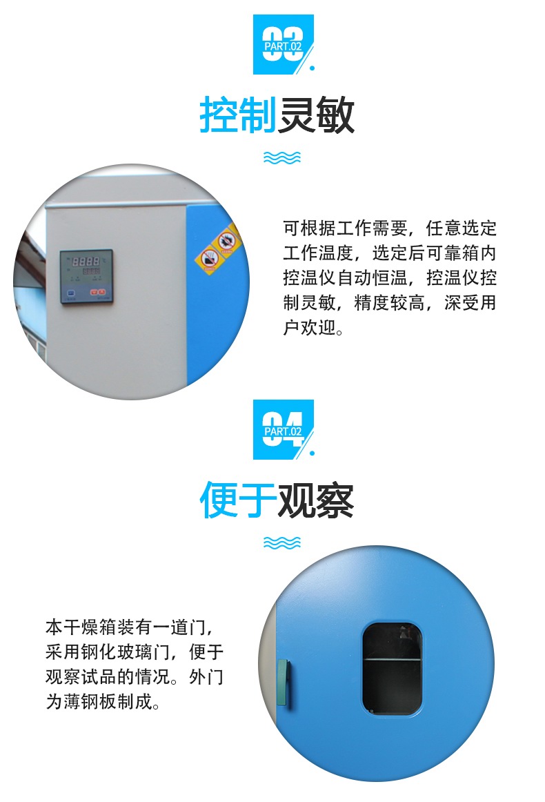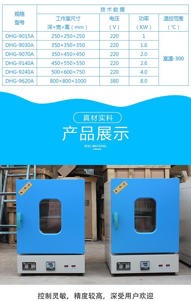 各種規格系列化,可供醫療衛生單位及其它部門化驗室做干燥、烘焙、熱處理及其它加熱廣泛應用。